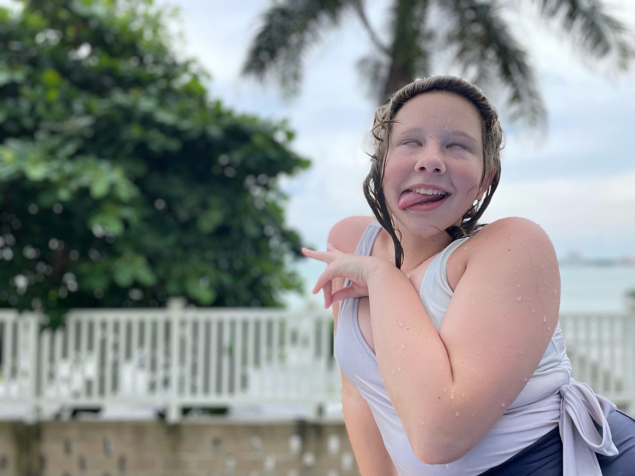 6. Taige prefers the calmer water, but is afraid to swim to it. You can’t touch there. As a compromise, she stands in the shallow water and gets thrashed by big waves. Sometimes this ends in what they call a “scorpion”. This is where your face is down on the ground and your legs are above the back of your head like a scorpion tail. This also brings me great pleasure, and I laugh.